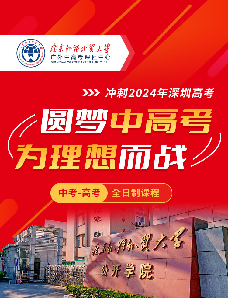 广东外语外贸大学白云湖校区打造的全日制中考、高考课程中心。中心专注于中考生、高考生、艺考生的中高考文化课冲刺,开设中高考复读班、艺文班(艺考文化课冲刺)、全日制三年高中班。坚持教育部指导的教学与管理,关心孩子心灵成长,助力众多学子圆梦理想院校。